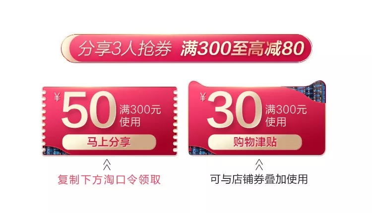 全店疊加購(gòu)物津貼,至高可獲得滿300-80